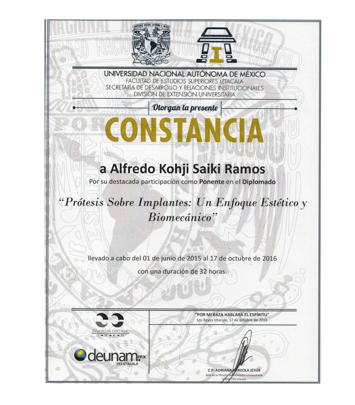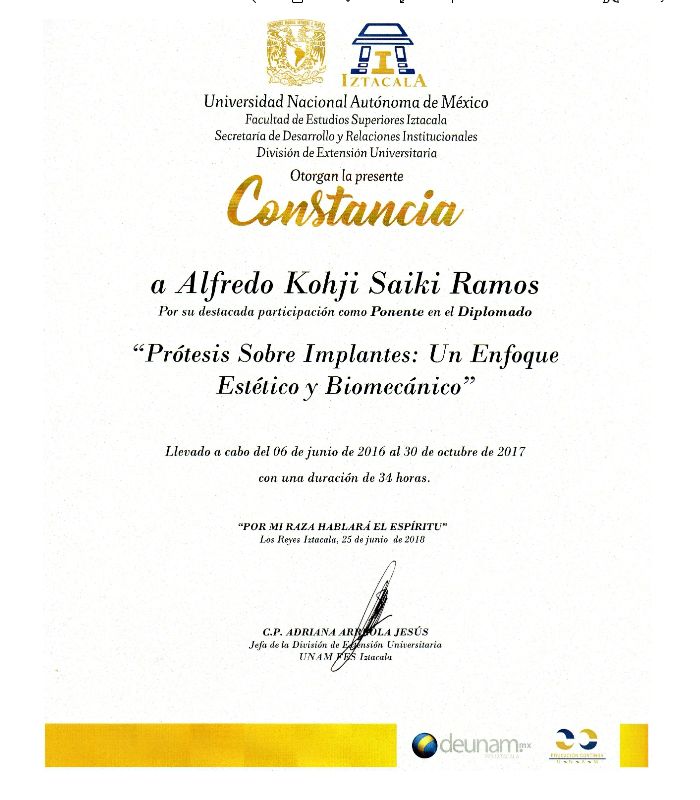 | Profesor de Diplomado en Implantología | UNAM FES-Iztacala |