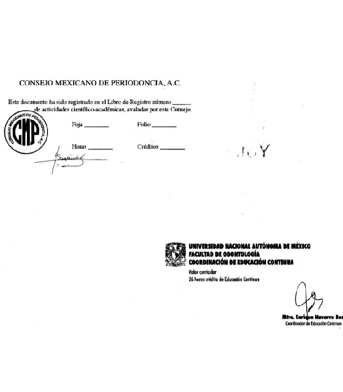 | Especialista en Endoperiodontología e Implantología | UNAM |